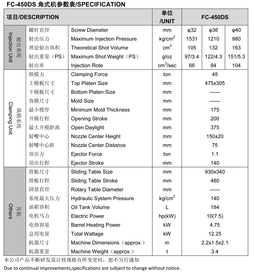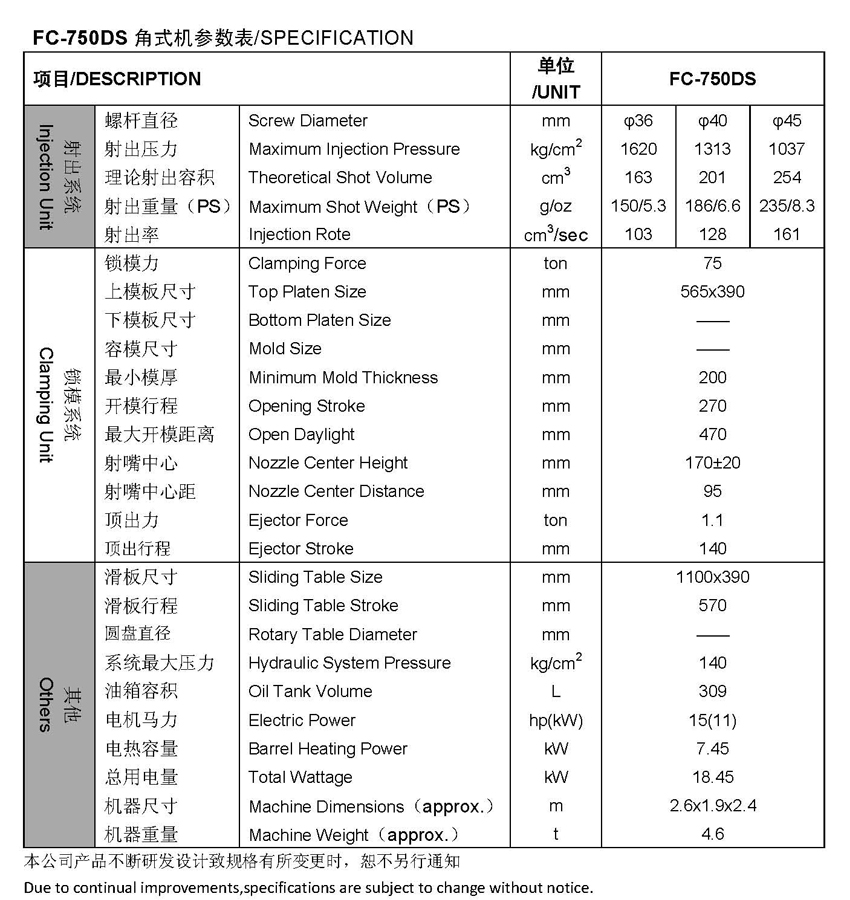 規(guī)格表 / Specification         鎖模力/Clamp Force (T)
